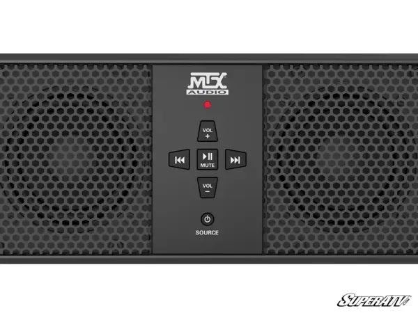 The MTX MUD6SPBT is a universal sound bar solution that is designed to deliver exceptional audio quality to any vehicle. This all in one unit includes six total speakers, four 3" full range drivers and two 1" high frequency tweeters. All speakers are connected to a 200 watt internal amplifier that delivers all of the power you need to hear you music whether you are on land or water. The integrated Bluetooth receiver allows you to stream music directly from your smartphone or tablet or you can direct connect your device via an external 3.5mm input. Additionally, the unit includes a 3.5mm auxiliary output allowing you to integrate an external amplifier and subwoofer if desired or to go out to another MUD6SPBT for even greater sound coverage.