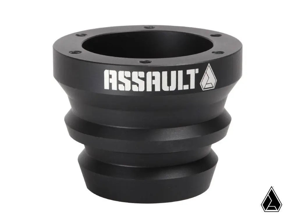 The Assault Industries steering wheel hub is designed for use with Assault Industries Steering wheels and quick release adapters. CNC machined from a solid chunk of 6061 T6 aircraft grade billet aluminum, the hub proves to be a robust upgrade from the OEM setup. The hub is hard anodized black and finished with a laser engraved Assault Industries logo. Steering wheel not included.