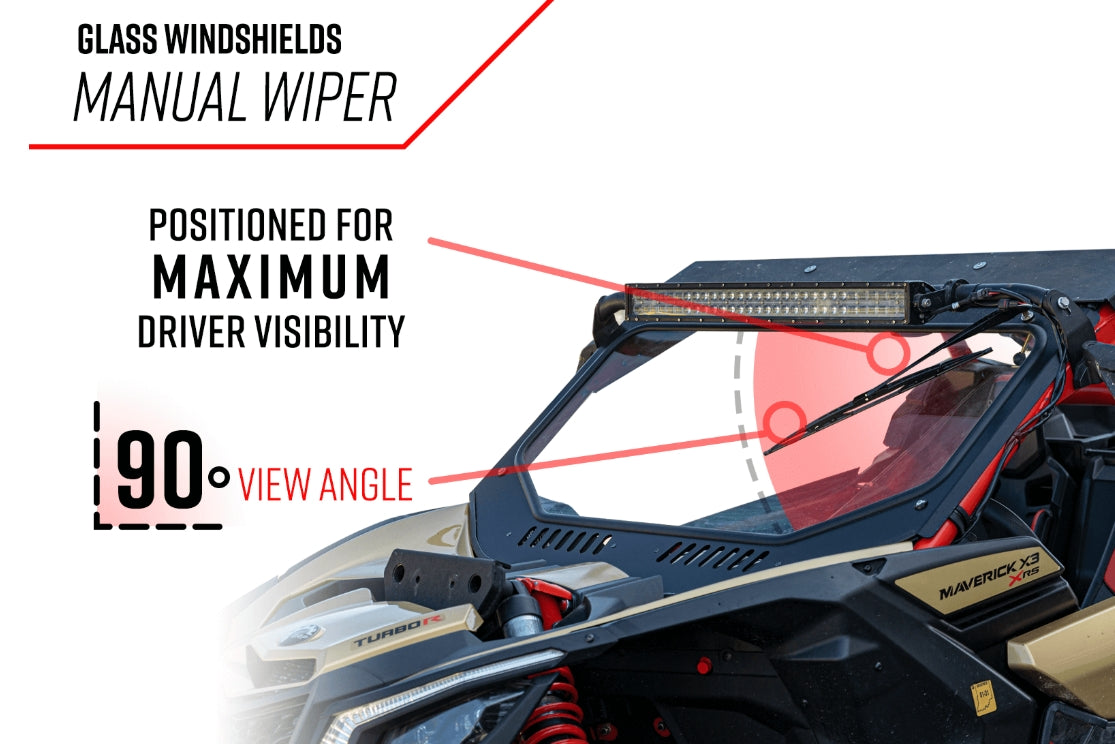 Take your Can-Am Commander out of the garage and onto the trails. But wait—bugs, dust, and dirt are going to be blown into your cab if you don’t have protection. SuperATV’s Glass Windshield keeps the elements and bugs out for your comfort. It features a wide-viewing angle and an included manual wiper, so you won’t miss the beautiful sights on the trails. And you’re not just limited to the trail with this windshield. Our glass windshields come with a DOT-approved stamp, getting you that much closer to being road-ready.