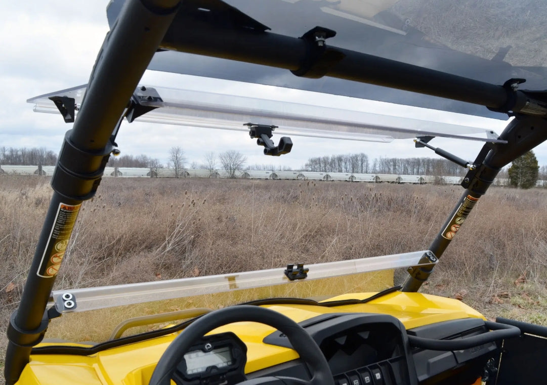 Get SuperATV’s Scratch-Resistant Flip Windshield for your Can-Am Commander and be ready to take on any challenging terrain. Our flip windshield gives you options thanks to our multi-stage latching mechanism. It’s a full windshield when you want to stay warm and keep the rain and mud out, a vented windshield when you want to let the air in while staying protected, and a half windshield when you want plenty of air to keep you cool. The best part? Powerful gas struts make it easy to open and close right from your seat.