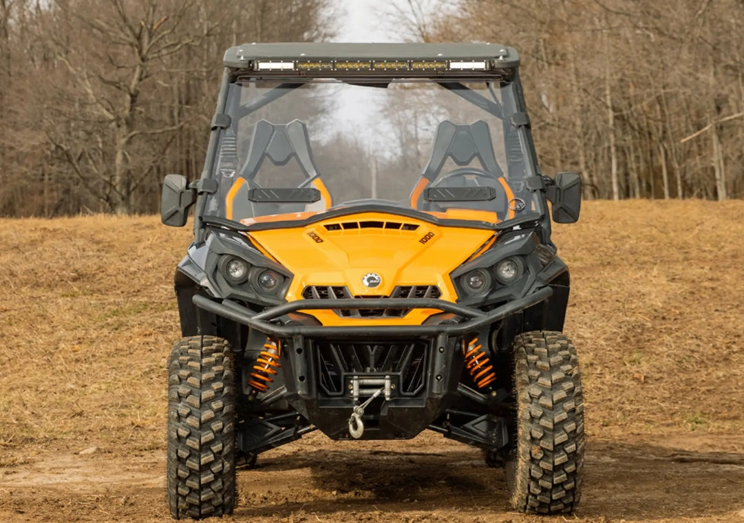 It's sunny and in the high 70s today, but it's supposed to be cloudy and the lower 50s tomorrow. Regardless of the forecast, you can take your Can-Am Commander out for a weekend of fun by adding SuperATV's Vented Full Windshield. This windshield comes with our BreezeRite vents with three settings—fully open, half open, and closed so you have total control of your cab's comfort. And we’ve made sure not to compromise your protection from the elements, so you get a full windshield built from our high quality 1/4” polycarbonate.