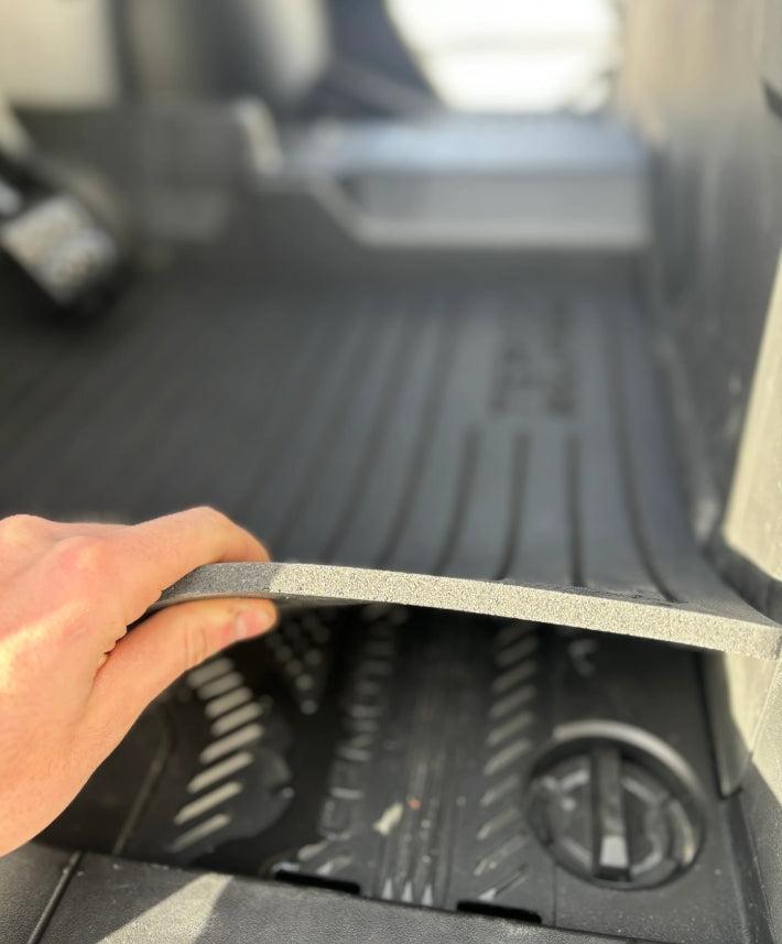 Our Terick floor mats are 100% made in the USA. We source the recycled rubber from a company right here in Wisconsin, just a couple hours from our shop. Adding our floor mats to your UTV will not only feel great on your feet and add extra grip, but they will also add a much needed layer of insulation to the plastic floor. The floor mats will insulate the floor from not only noise, but hot and cold temps as well. And don't forget the cargo mat. Finally, a solution to prevent all of your stuff from sliding around in the box!