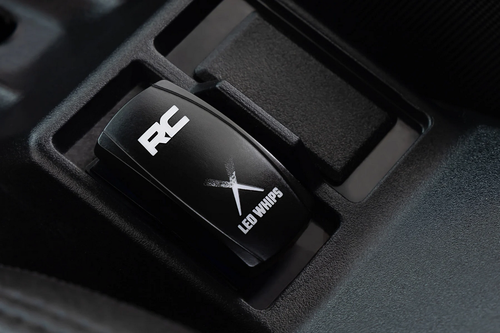 Take your off-road experience to the next level with Rough Country's Laser Whip Light Kit. Engineered for serious off-road enthusiasts, these lights provide 2400 lumens per color to ensure you’re visible no matter how wild the terrain. With a durable, IP67 waterproof housing and focus pencil color beams in RGBW, you'll dominate the trail in style and safety. Whether you're blazing through the dunes or tackling muddy trails, these LED whips will stand up to the toughest conditions while making sure your ride turns heads.