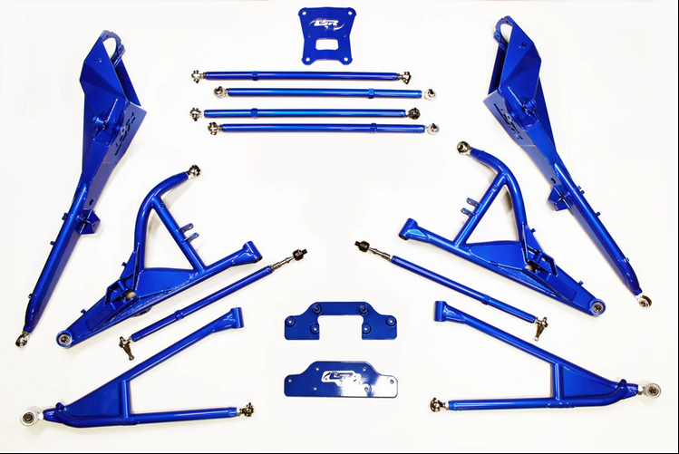 The Lone Star Racing MTS Suspension Kit for the Polaris PRO XP is designed to add 5" of width per side while retaining the factory wheelbase. The kit includes a front upper shock mount to improve front end shock geometry and the rear shock mount location has been moved to improve handling all while utilizing stock length shocks. The kit is made from 4130 chromoly for superior strength and uses heavy duty 3/4 and 7/8 rod ends for adjustability and strength.