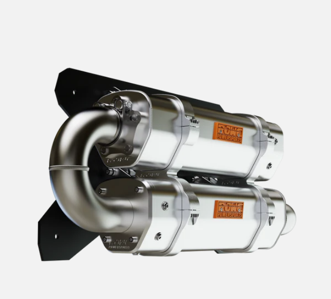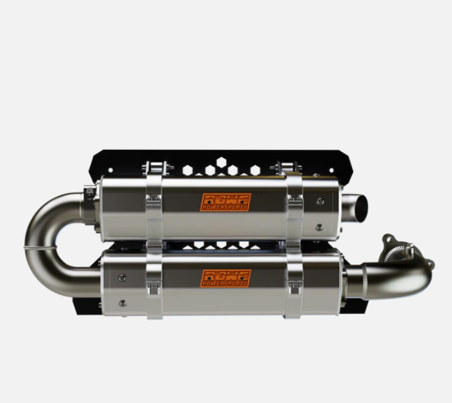 Enhance your Polaris RZR XP Turbo with the APX Dual Quiet Slip-On Exhaust, a leading solution in aftermarket upgrades designed to optimize your vehicle's performance subtly yet powerfully. This exhaust system stands apart with its all-aluminum modular build, employing CNC-machined brackets at crucial structural points to boost strength and durability over traditional welded joints.