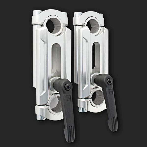 Notes: Extended throttle cable and brake line may be required to accommodate taller risers, always check that you have adequate length before installing risers and operating vehicle. Patented by the US Patent and Trademark Office under US Patent #7,685,904