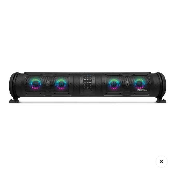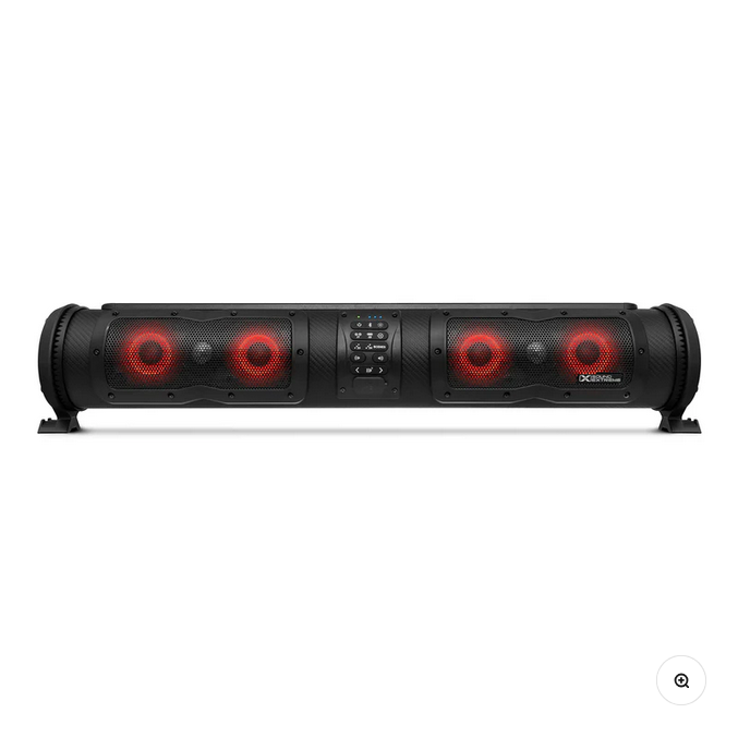 The new SoundExtreme Elite powersports soundbar now includes integrated LEDCast lighting control and upgraded speakers for richer and more powerful sound. The LED lighting system is perfect for your ATV/UTV, boat, and golf cart. 100% waterproof, dustproof, and dirtproof. 500 watts of power to 8 marine grade speakers provides a great listening experience. With our EcoCast feature connect up to 50 Sound Extremes at a time! Our LEDCast lighting control is a 4 zone controller. It allows you to connect up to 2 additional LED light kits or whips