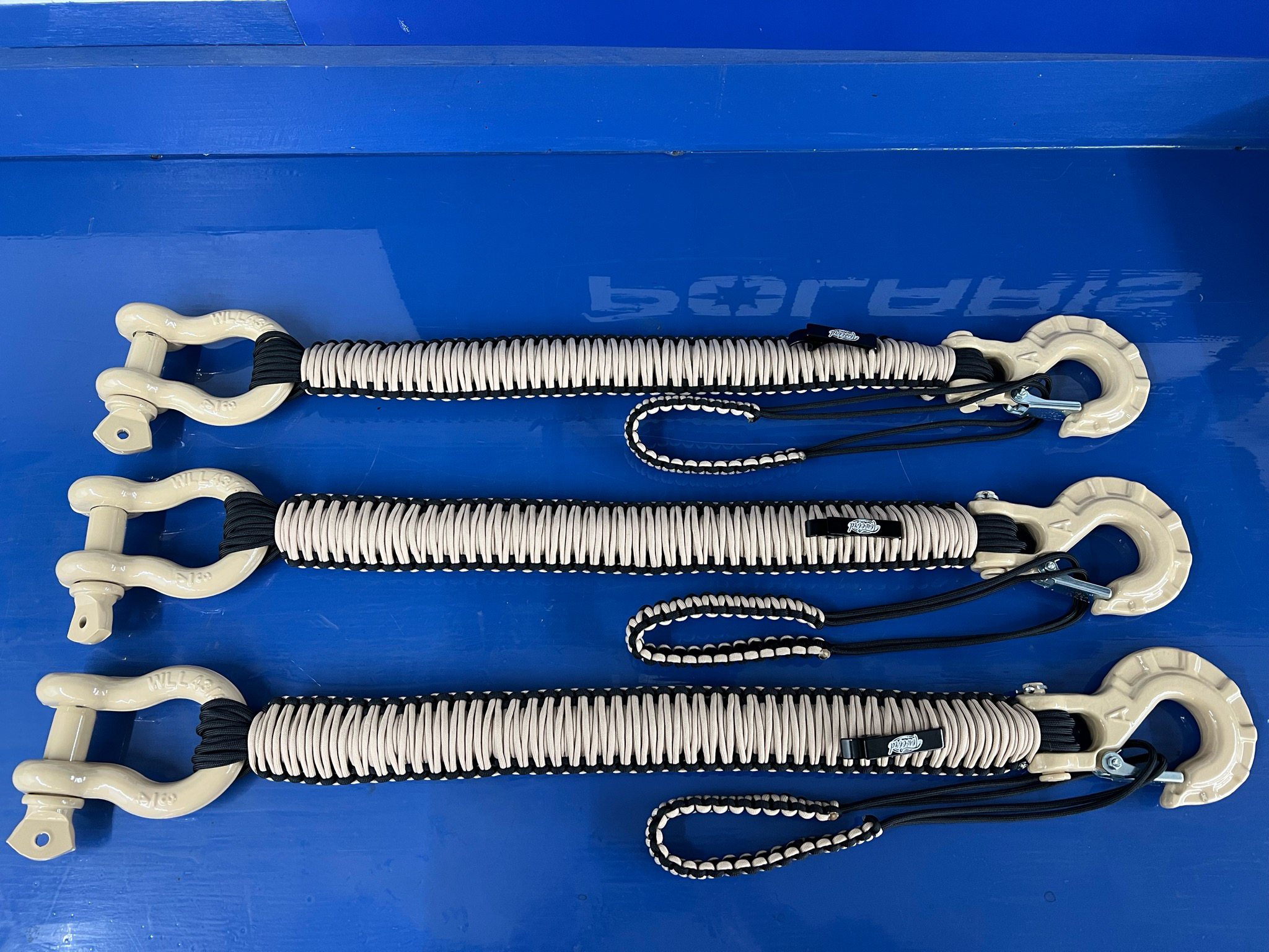 This item offers a complete custom cord color/hook and shackle setup. Pick your outer/inner color from the drop-down. Powder coating you will need to reach out to us directly.